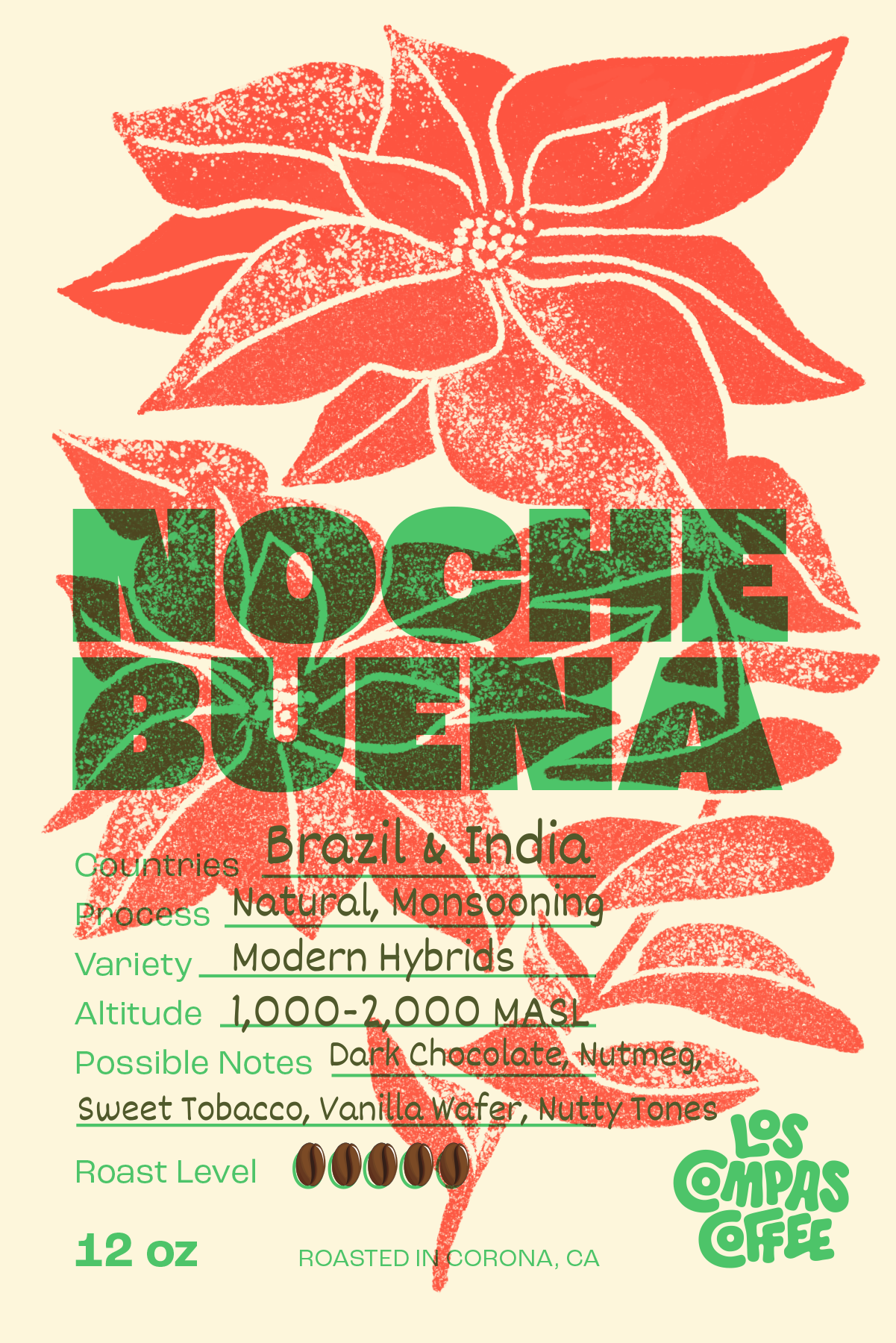 This special holiday blend named after the iconic poinsettia flower indigenous to Mexico and Central America produces a rich balanced cup that has a creamy body thanks to the low acidity and smooth mouthfeel of both single origin coffees it's made from. The earthy and spicy notes of Indian coffee are balanced by the nutty, chocolatey flavors of Brazilian coffee. Whether you're busy wrapping presents for loved ones or getting the house ready for festivities, this decadent dark roast is sure to put you in the holiday spirit.