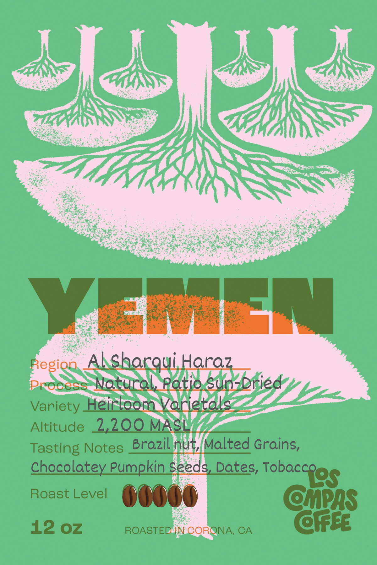 Sharqui Haraz offers deep rustic sweetness, earthy cacao, and subtle fruit undertones with a bittersweet chocolate core. Hints of molasses, toasted nuts, and a touch of sweet smoke create a bold, complex profile. Smooth yet full-bodied, it’s perfect for espresso or rich, flavorful brews.